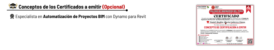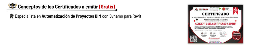 El objetivo de este curso es proporcionar a los participantes las habilidades y conocimientos necesarios para utilizar eficazmente Dynamo dentro del contexto del uso de Revit. Mediante la automatización de tareas repetitivas, generación de geometría compleja, extracción de datos de modelos BIM, realización de modelos paramétricos y la interoperabilidad con otros softwares.